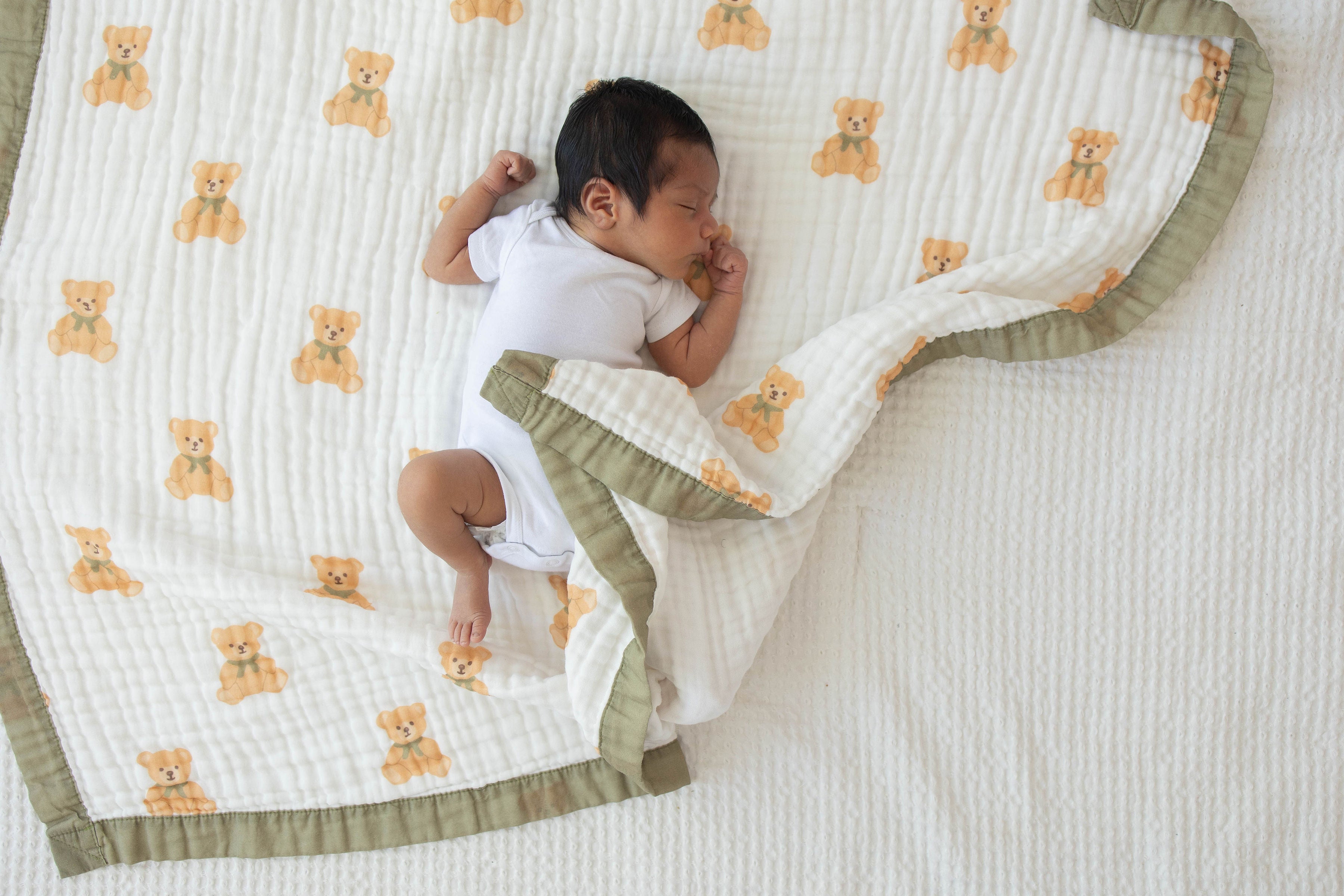 100% Muslin Cotton Baby Blanket – Teddy Bear Snuggle Print for Newborns & Toddlers